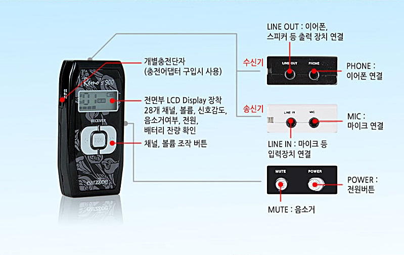 예배, 설교 동시통역 및 가이드를 위한 !!! 이어존 REMOS 900 무선 송수신기 패키지 !!!