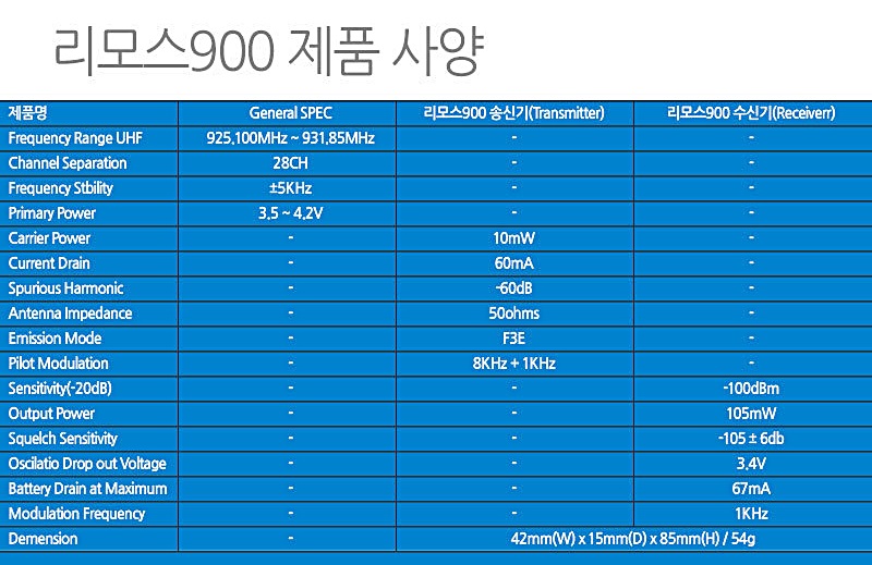 | 수신기 SPEC | RCV-900 (Receiver) |