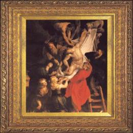 예수께서 함께 식탁에 앉아 빵을 들어 감사의 기도를 드리신 다음 그것을 떼어 나누어 주셨다.