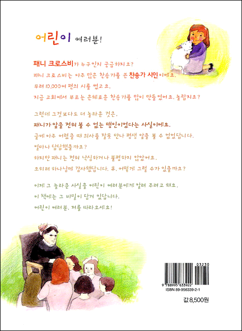 어려움을 딛고 훌륭한 인생을 산 패니 크로스비의 삶은 어린이들에게도 꿈과 소망을 줄 것입니다.